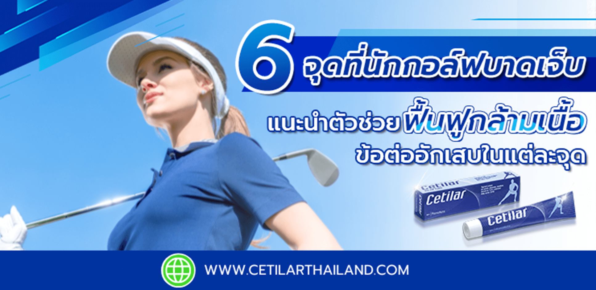 สุดท้ายนี้ หากคุณเป็นนักกอล์ฟที่ต้องการความพร้อมทั้งในสนามและนอกสนาม อย่าลืมมี Cetilar Cream ที่มีส่วนประกอบของสาร CFA ติดตัวไว้เป็นผู้ช่วยในการฟื้นฟูร่างกาย สามารถดูรายละเอียดเพิ่มเติม หรือ สั่งซื้อได้ที่เว็บไซต์ https://www.cetilarthailand.com/